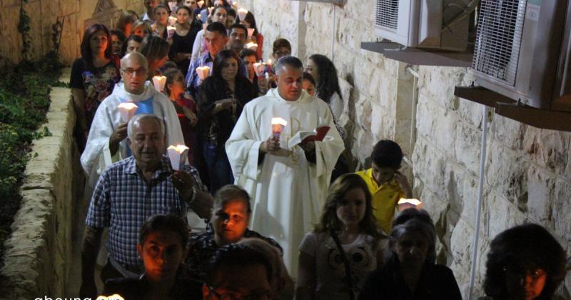 The second day of celebrations marking the end of the Holy Marian Month were held at the Our Lady of Lourdes grotto in Na'our, with the rosary prayed, and the Holy Mass celebrated and presided over by Fr. Imad 'Alamat, parish priest of Fuheis. It was followed by a procession with candles held high as hymns sung and prayers said.